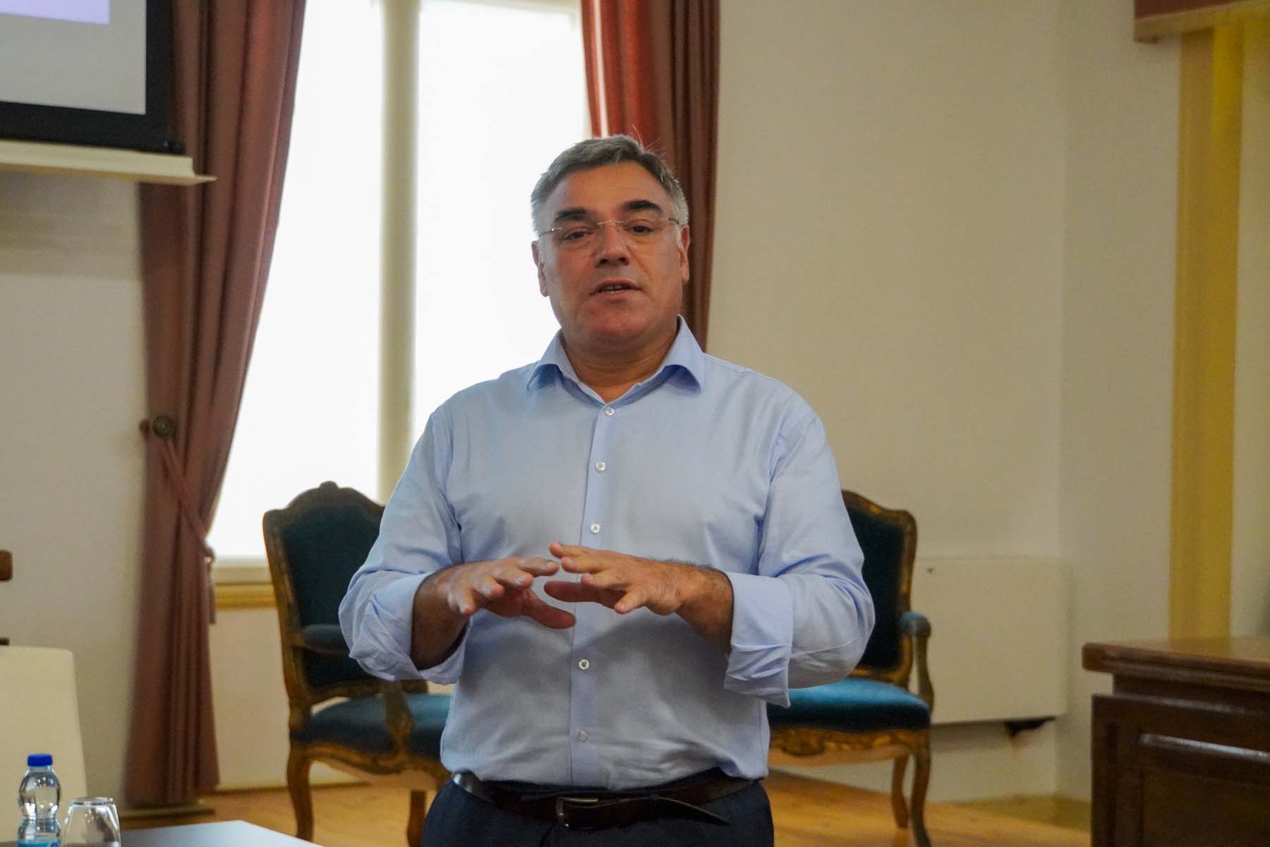 A sessão decorreu em dois momentos distintos. O primeiro consistiu numa reunião de trabalho dirigida por Carlos Miranda, Presidente da Câmara Municipal da Sertã e Miguel Pombeiro, 1º Secretário Executivo da CIM Médio Tejo. Ciente de que uma boa rede de transportes é fundamental para a qualidade de vida da população, Carlos Miranda referiu a importância de se auscultar as necessidades da população e reunir ideias e soluções realçando, assim, a pertinência daquela apresentação, que contou com a participação das juntas de freguesia do concelho, associações locais e técnicos do Município.