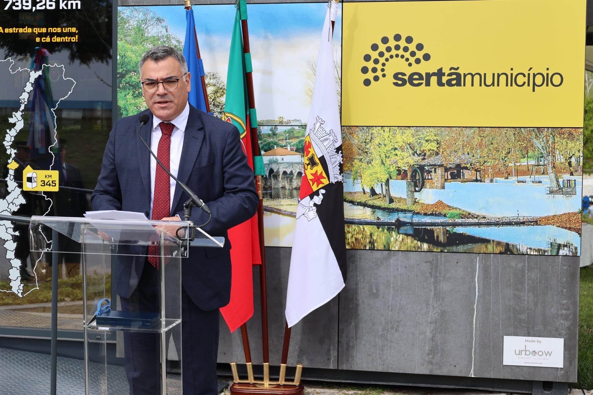 António Mendes Nunes usou da palavra e abordou a história e a génese da sua paixão pelas estradas, sobretudo pela Estrada Nacional 2. Abordou o plano rodoviário de 1945 e referiu que a EN2 só foi terminada 25 anos depois da inauguração, na Sertã, com a inauguração da Ponte da Isna (maio de 1970). Referiu-se à Sertã como sendo a entrada mais antiga da EN2 num concelho, dado que na altura não existia a Barragem do Cabril e a entrada se fazia pela Ponte Filipina. Falou da Route 66, congénere americana, e dos pontos de contacto entre ambas, nomeadamente a interioridade. Lembrou que, em 2010, começou a haver interesse pelas estradas, tendo sido atribuído o primeiro galardão internacional a uma estrada, concretamente a EN222 que liga Vila Nova de Gaia a Vila Nova de Foz Côa. Com um percurso maioritariamente à beira do rio Douro, a estrada foi distinguida com o galardão World Best Driving Road. Foi a partir daí que António Mendes Nunes se dedicou à EN2 e se lançou na escrita do roteiro, que esgotou várias edições. Posteriormente assistiu ao nascimento a AMREN2 que refere ser "a garantia de que esta mítica estrada não será esquecida e que será bem cuidada, como podemos ver neste bonito exemplo que estamos aqui hoje a inaugurar". A encerrar a cerimónia, António Mendes Nunes procedeu simbolicamente à abertura do Posto de Turismo.