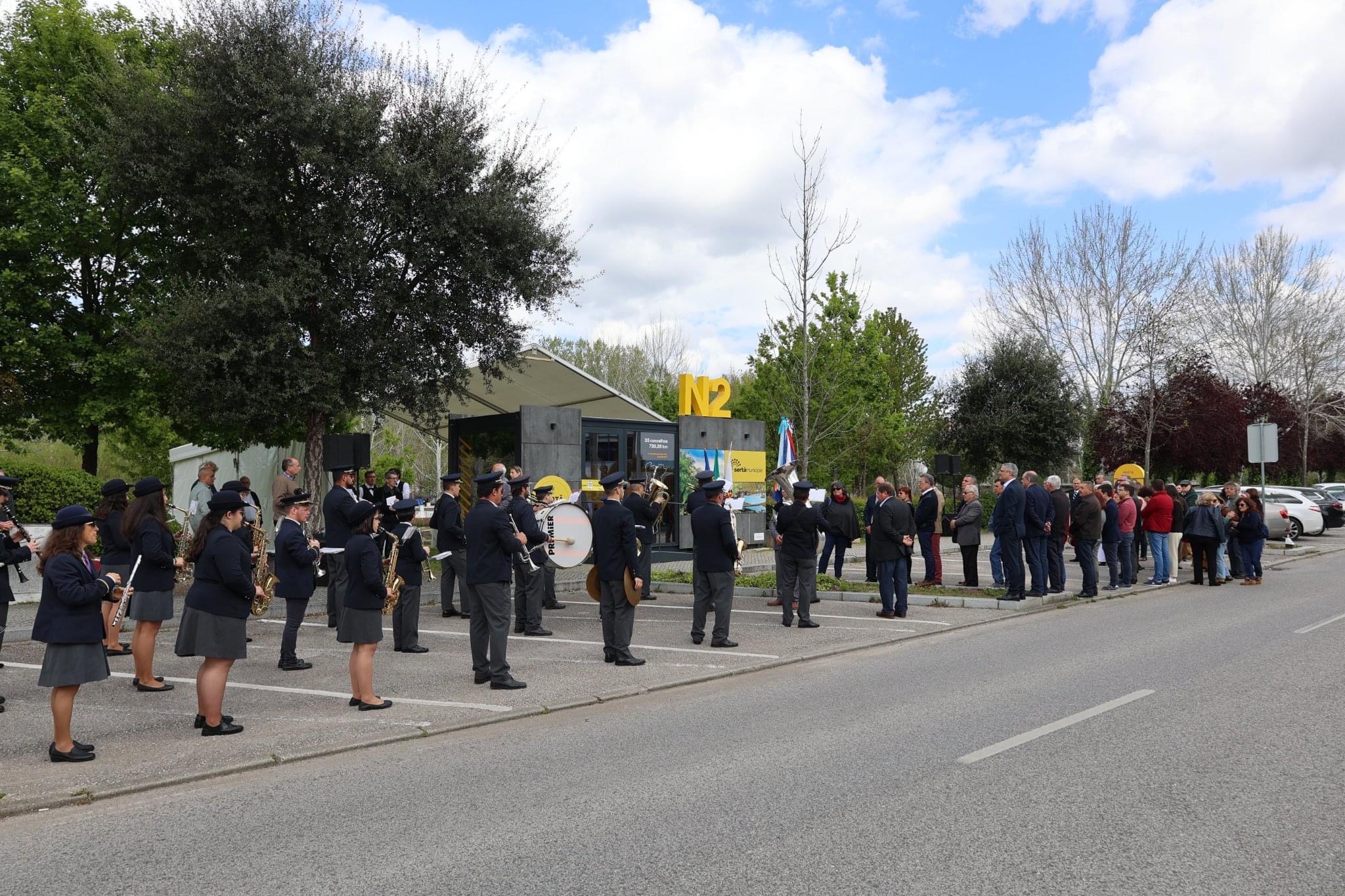 Na Estrada Nacional 2, concretamente na Avenida Padre Manuel Antunes, teve lugar a intervenção do Presidente da Câmara, Carlos Alberto de Miranda. O autarca recordou o que era Portugal antes do 25 de Abril, sublinhando que "é preciso continuar a cumprir Abril e a esperança que Abril trouxe (...) através da construção de um país onde liberdade se una a desenvolvimento e a solidariedade". Carlos Alberto de Miranda apontou o fortalecimento do poder local como uma das grandes conquistas do 25 de abril: "com poder efectivo, próximo das populações, agente de coesão e desenvolvimento, com visão estratégica, capaz de pensar o território de forma abrangente." Neste âmbito, o autarca referiu fazer todo o sentido abrir naquele dia o novo balcão de atendimento turístico à beira da Estrada Nacional 2, referindo que esta nova estrutura está mais perto do público, estando agora no local ideal. Estará aberto ao público todos os dias no seguinte horário: segunda, sábado e domingo das 10 às 13 horas e das 14 às 19 horas, e de terça a sexta-feira das 10 às 19 horas. Encerra a 1 de janeiro, Sexta-feira Santa, Domingo de Páscoa, 1 de maio e 25 de dezembro.
