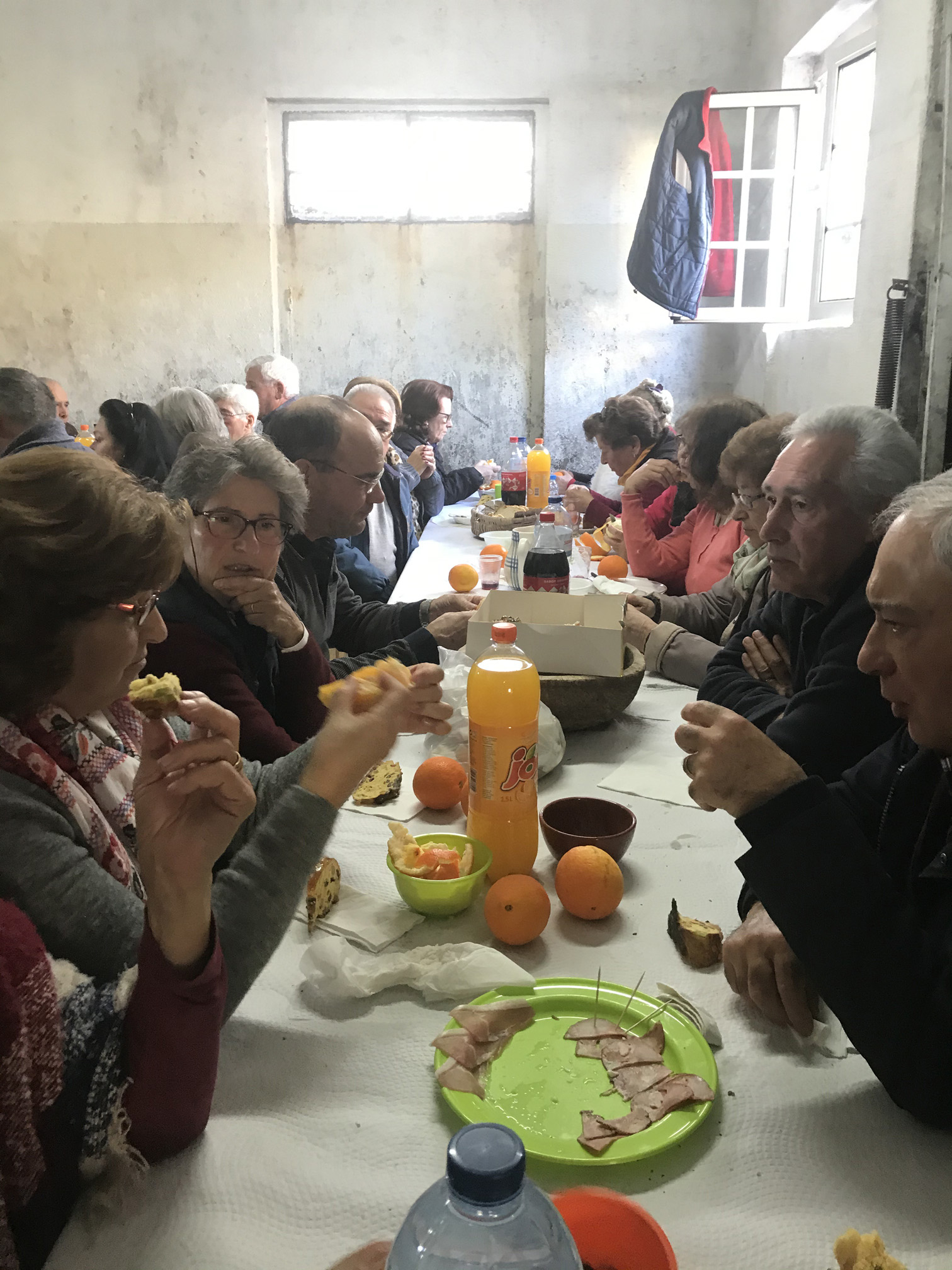 Num ambiente de boa disposição, a refeição começou com uma degustação de entradas regionais, com destaque para a "tiborna", e terminou com o tradicional "café de chocolateira" ou "café da avó", acompanhado pela típica aguardente de medronho.