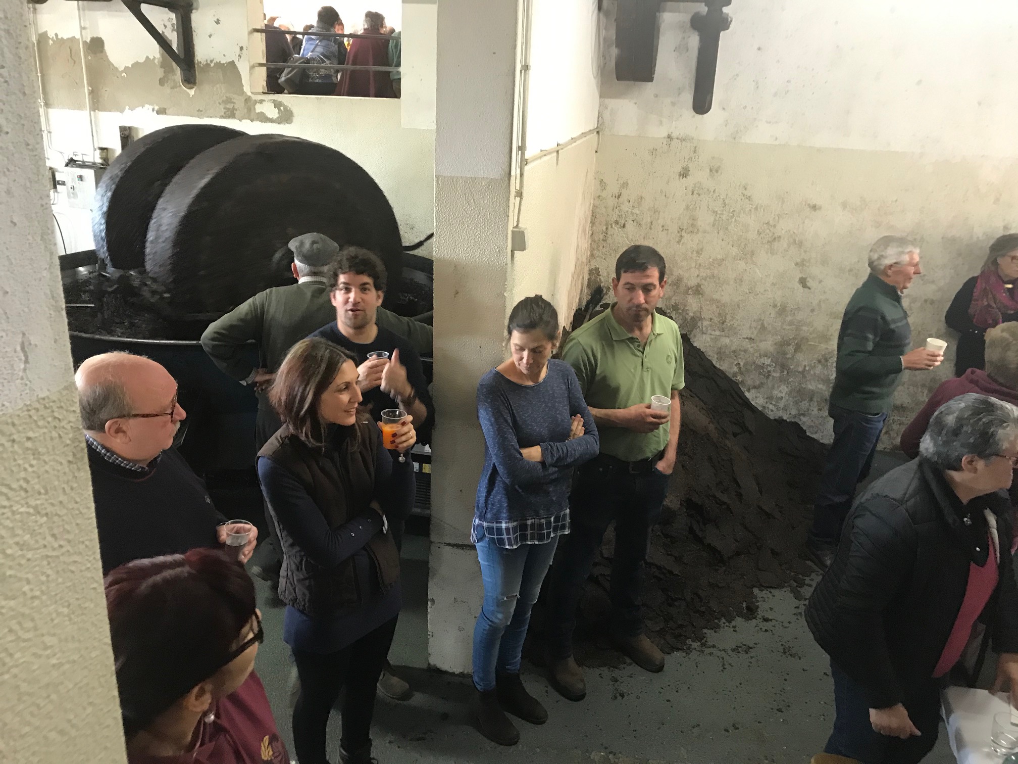 Os participantes foram calorosamente acolhidos pelos proprietários e pelos lagareiros e tiveram a oportunidade de viver a experiência de ver toda a estrutura do lagar em funcionamento e sentir na primeira pessoa os cheiros e os ruídos provocados pelas máquinas em laboração.