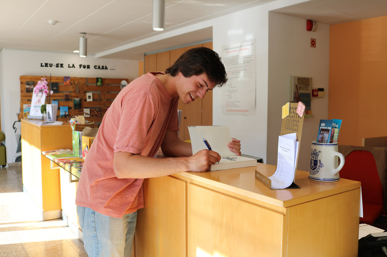 Afonso Reis Cabral cumprimentou ainda toda a equipa da biblioteca e autografou o seu livro "O Meu Irmão".