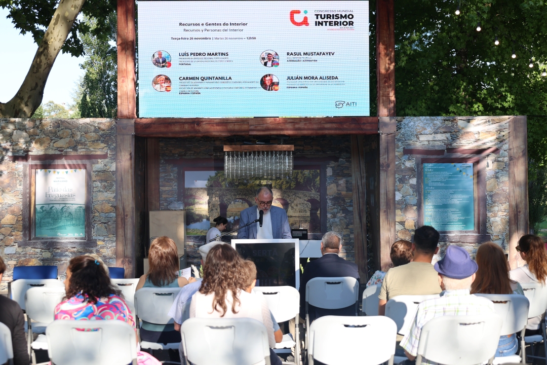 O Congresso Mundial Turismo do Interior destina-se a empresários e profissionais do turismo, administração local e central e ensino “porque é fundamental unir a vertente académica e empresarial” destacou Miguel Martins da AITI. “Mobilidade e turismo de interior”, “Turismo religioso e espiritualidade ou a “Sustentabilidade do turismo depois de 2023” serão os tópicos para o primeiro dia de congresso, a 26 de novembro. No dia seguinte, serão tema de debate “Recursos e gentes dos territórios de interior”, “Interior é destino?” e “Beira Baixa e Extremadura, que futuro?”. Miguel Martins concluiu a sua intervenção convidando todos os presentes para a participação no Congresso Mundial Turismo do Interior e anunciou que Portugal irá receber a segunda edição desta iniciativa em 2025.