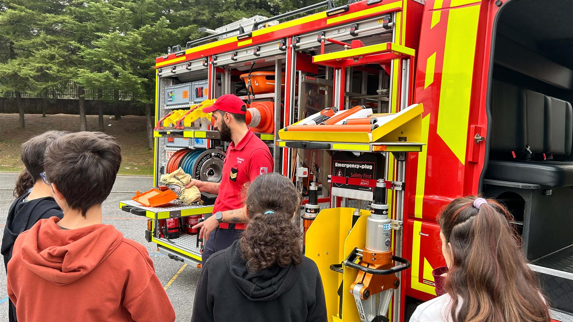 Os alunos tiveram a oportunidade de interagir com os bombeiros, ver e experimentar os diferentes equipamentos de socorro e equipamento de proteção individual dos bombeiros voluntários. Entre os veículos expostos estiveram: Veículo de Socorro e Assistência Especial, Veículo Rural de Combate a Incêndios, Ambulância de Socorro e Veículo de Planeamento, Comando e Comunicações da Autoridade Nacional de Emergência e Proteção Civil do Comando Castelo Branco.