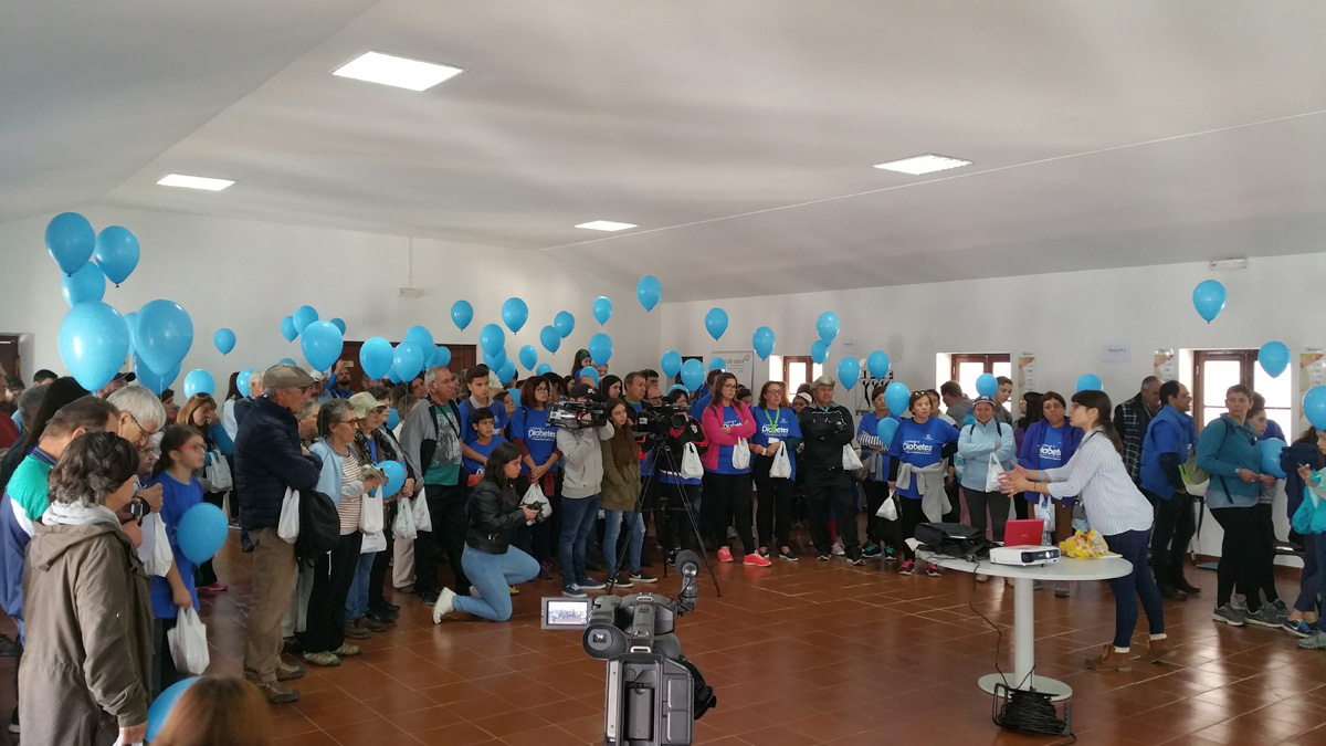 As atividades tiveram início com a realização de rastreios de saúde aos participantes, seguida pela sessão alusiva à importância da alimentação na Diabetes. Seguiu-se a foto de grupo com o círculo azul "Unidos pela Diabetes" que representa a união pela doença e pela sua prevenção. |