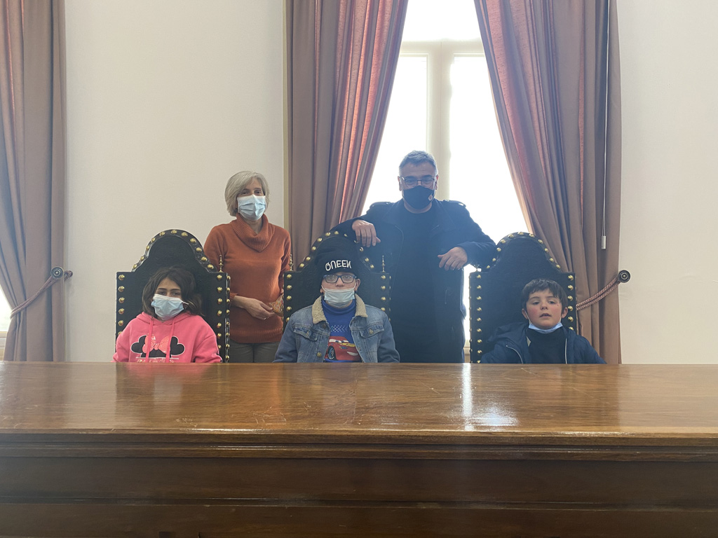 No passado dia 10 de março, nove alunos da Sala da Vida Ativa e Unidade de Ensino Estruturado da Escola Básica da Sertã, acompanhados de professoras e auxiliares, deslocaram-se até ao Edifício dos Paços do Concelho da Sertã com uma missão especial. Entregaram ao Presidente da Câmara Municipal da Sertã uma garrafa de azeite proveniente da apanha da azeitona das oliveiras situadas na Escola. Refira-se que aquelas crianças acompanharam quase todo o processo do ciclo do azeite desde a apanha da azeitona, até ao engarrafamento e rotulagem. Mostraram-se satisfeitas pela visita ao Edifício dos Paços do Concelho em que puderam entregar um pouco do resultado do seu trabalho ao Presidente da Câmara. |