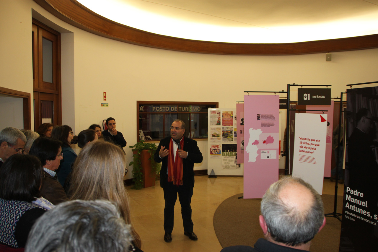 Para encerrar a cerimónia de inauguração, José Eduardo Franco fez uma pequena visita guiada pelos diversos painéis da exposição, enquadrando cada um deles na biografia do Padre Manuel Antunes.