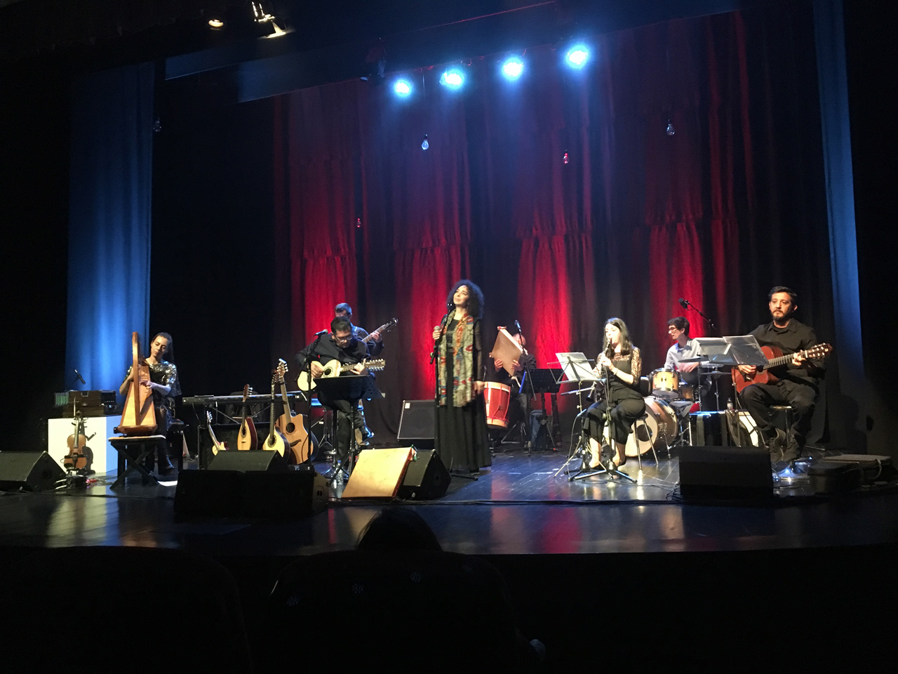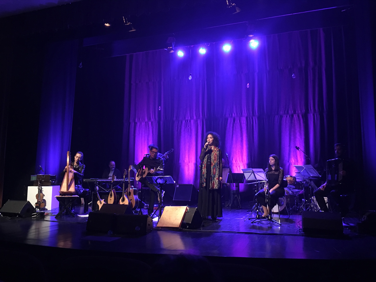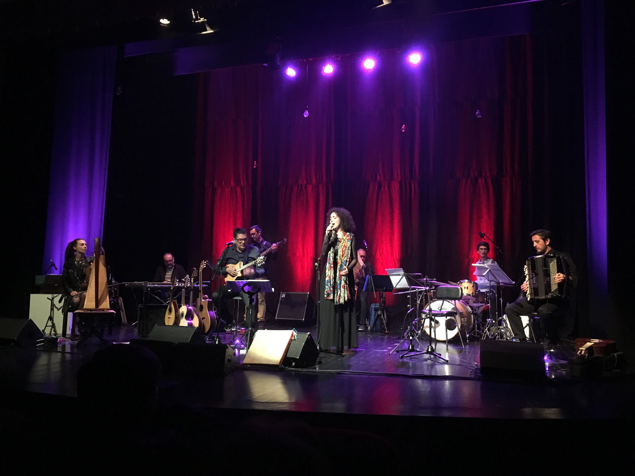 A plateia estava bem composta e pôde apreciar música folk, em que a música tradicional portuguesa incorporou sonoridades contemporâneas, estando bem presentes os sons tradicionais da viola beiroa e do adufe. |