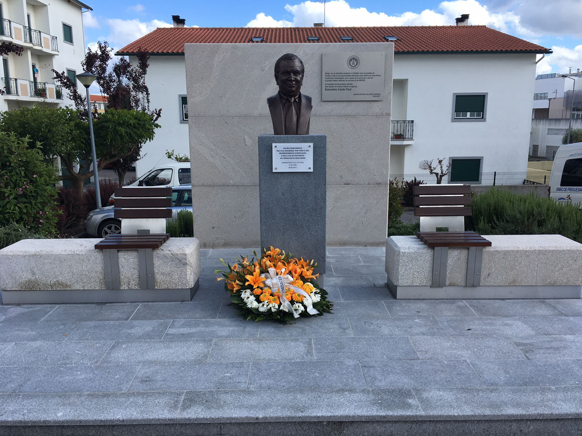 José Farinha Nunes, Presidente da Câmara Municipal da Sertã, prestou o devido reconhecimento e vénia a Diamantino Pina, "homem interessado, acutilante, generoso, defensor de causas e com uma enorme vontade de participar em tudo o que fosse relacionado com fenómenos políticos e a causa pública." "Autarca sábio e atento, tinha uma enorme tendência para a realização de coisas. (...) Impunha velocidade de execução sempre que acordava alguma obra ou benfeitoria e era decidido e exigente para com quem sabia que podia dar ainda mais para as suas causas. " A homenagem "é justa e é devida pois todos sabemos quanto o fazia feliz o empenho e a dedicação que sempre colocou em prol da sua Terra e dos seus conterrâneos." Cátia Calado, filha de Diamantino Pina, finalizou os discursos daquela cerimónia emotiva, recordando diversas facetas do pai, o orgulho que o pai tinha pelo seminário, por Nuno Álvares Pereira, pelo Instituto Vaz Serra. Sente que o pai ainda está vivo na sua terra, "pelo que fez e deixou". Após os discursos foi descerrado o busto com a placa evocativa, e uma placa com uma dedicatória da ANAFRE Distrital de Castelo Branco.