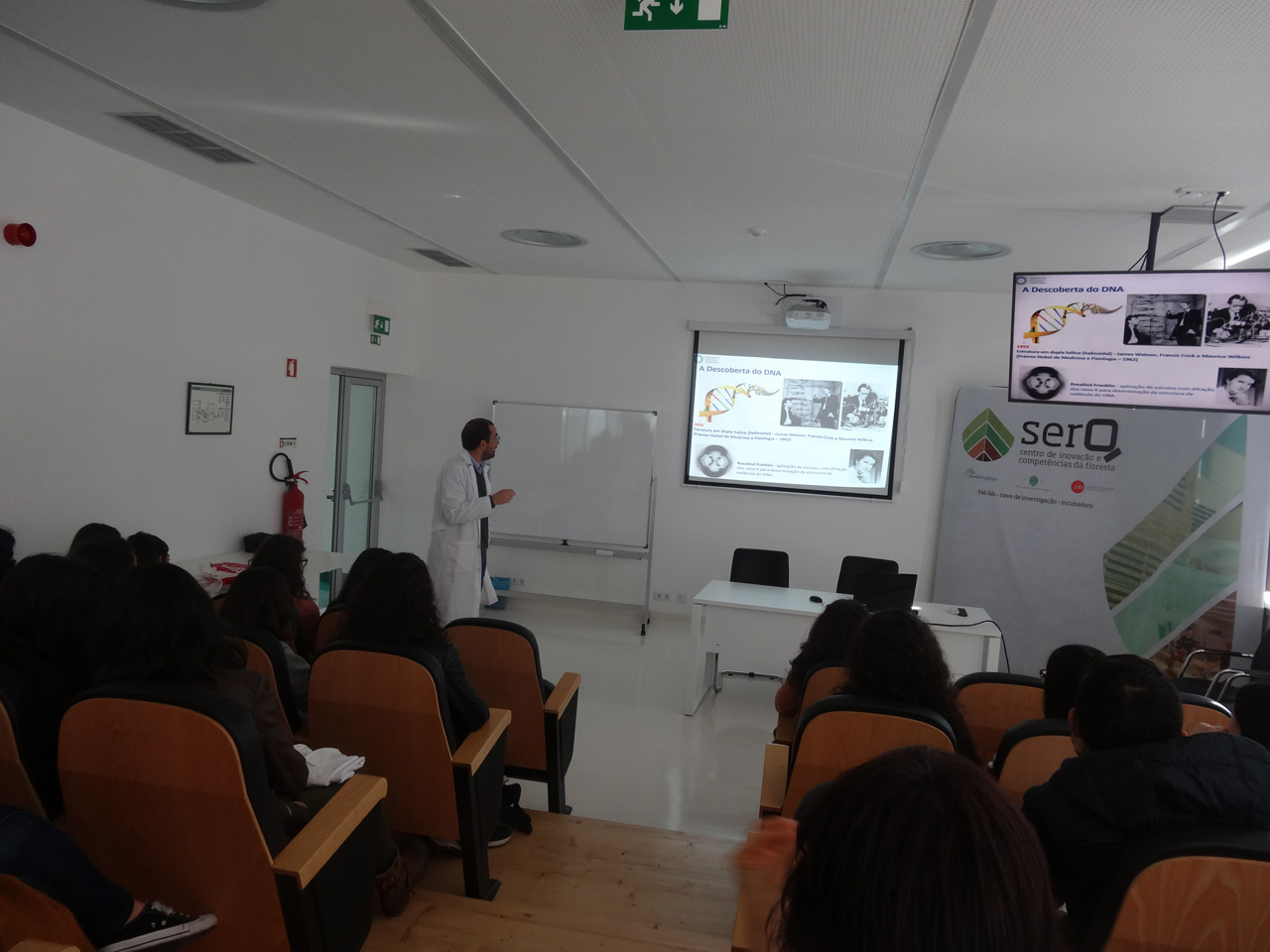 No contexto de diversas sessões realizadas desde o início do presente ano lectivo, destacam-se as ações realizadas com a Escola Secundária da Sertã e a Escola Básica do Castelo. Em janeiro, os alunos de Biologia da Escola Secundária da Sertã, deslocaram-se ao SerQ para assistirem a uma aula (teórica e prática) sobre "Os Ciclos de Vida", desenvolvida pela Professora Isabel Abrantes e assistentes, investigadores e especialistas na área, nomeadamente na temática do Nemátodo do Pinheiro. A 14 de março, foi a vez dos alunos do 12º ano, também de Biologia, absorverem novos conhecimentos transmitidos pela equipa da mesma professora sobre PCR e reação em cadeia da polimerase (relacionado com o estudo do DNA). Trata-se de ações que complementam as aulas desenvolvidas no âmbito dos respetivos currículos. Em ambas as ocasiões, foram realizados vários ensaios no laboratório de Ciências da Vida do SerQ.