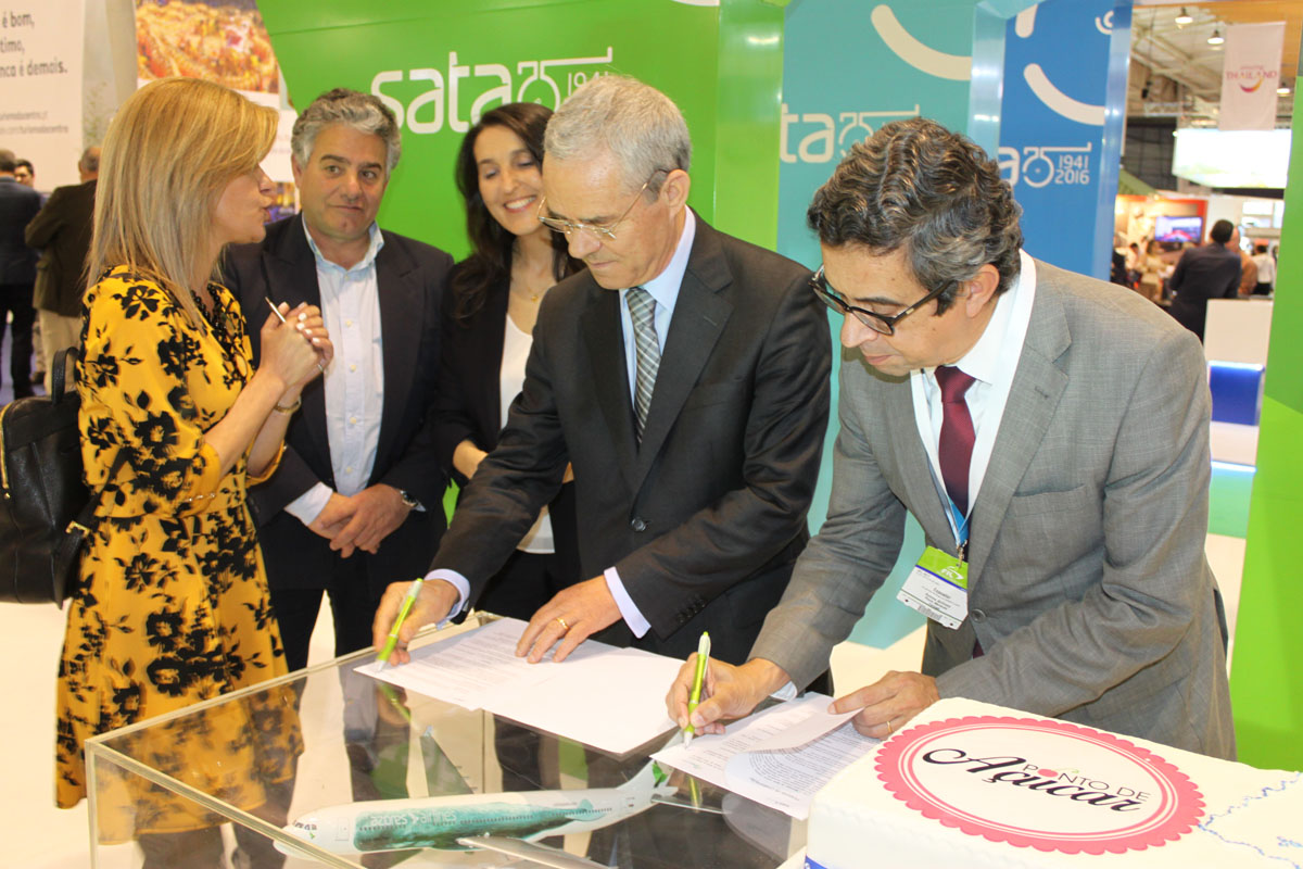 O protocolo foi assinando no stand da Sata, na BTL, por José Farinha Nunes, Presidente da Câmara Municipal da Sertã, Paulo Meneses, Presidente do Concelho de Administração do Grupo SATA, e Isabel Barata, Vogal do Conselho de Administração.