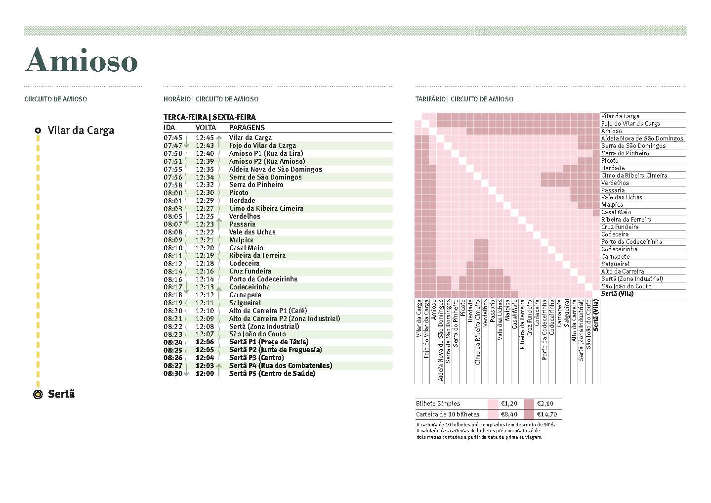 As carteiras têm 10 bilhetes com validade de 2 meses a contar da data da primeira viagem. Devem ser solicitadas para a linha de atendimento, no momento da reserva, e são vendidas pelo motorista no momento de embarque da primeira viagem.