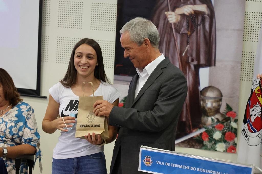 No Auditório da União de Freguesias, em Cernache do Bonjardim, teve lugar a cerimónia de homenagem a Vasco Nunes (Campeão Regional de Ténis Sub12) e a entrega do Prémio Dr. Francisco Antunes da Silva a Marina Ramos, a aluna da união de freguesias que, em 2021/2021, ingressou com a melhor média no Ensino Superior.